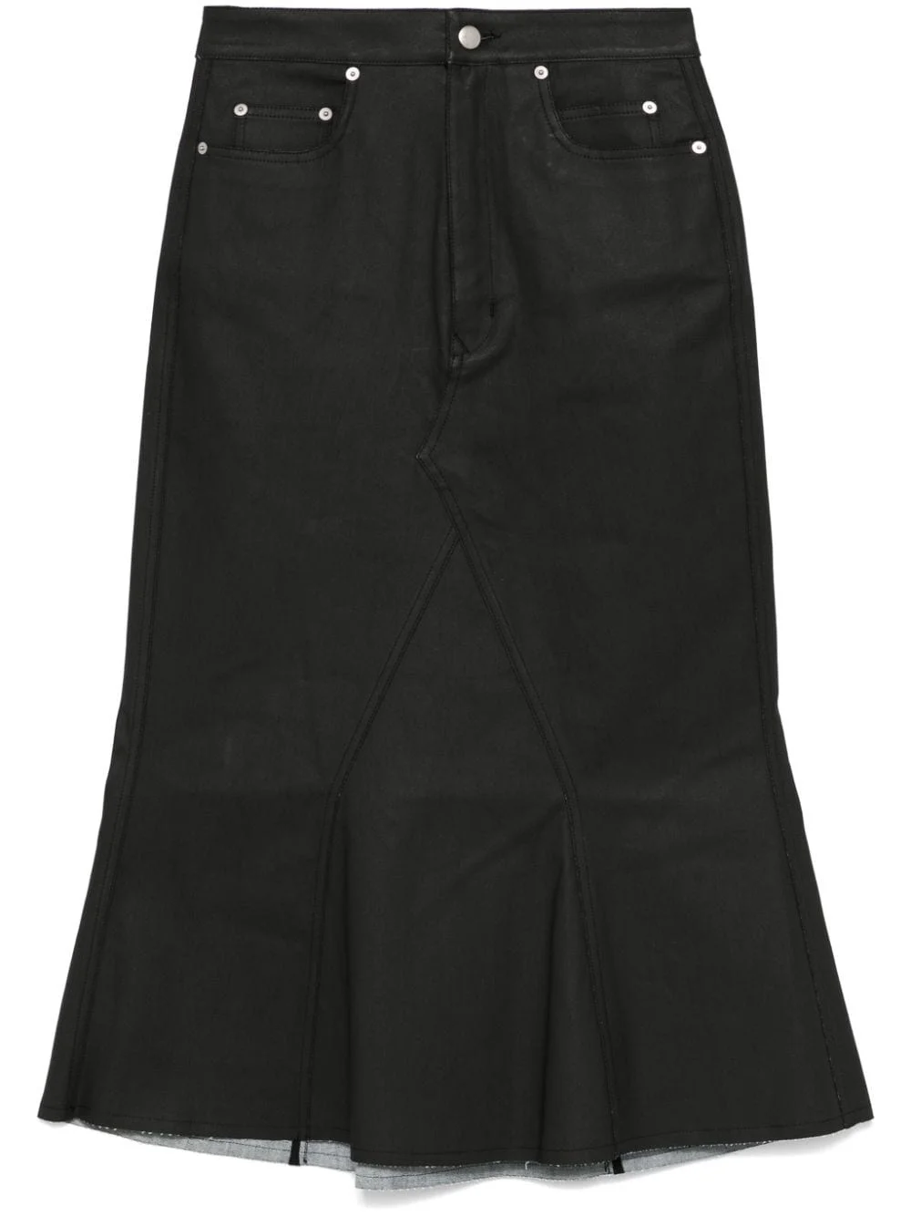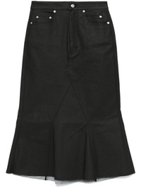coated midi skirt Highlights - Black - Cotton blend - Denim - Coated finish - Concealed fly and button fastening - Classic five pockets - Unlined - Flared hem - Mid-length Made in Italy Composition Outer: Cotton 91%, Elastomultiester 6%, Rubber 3% Lining: Cotton 100% SIZE & FIT Model measurements Height 5 ft 10 in(1.77 m) Bust/Chest 33.07 in(84 cm) Hips 37 in(94 cm) Waist 24.8 in(63 cm) FittingInformation This midi-length skirt is intended to be worn high on the waist Constructed from stretch denim, this piece offers a stretch fit with durability