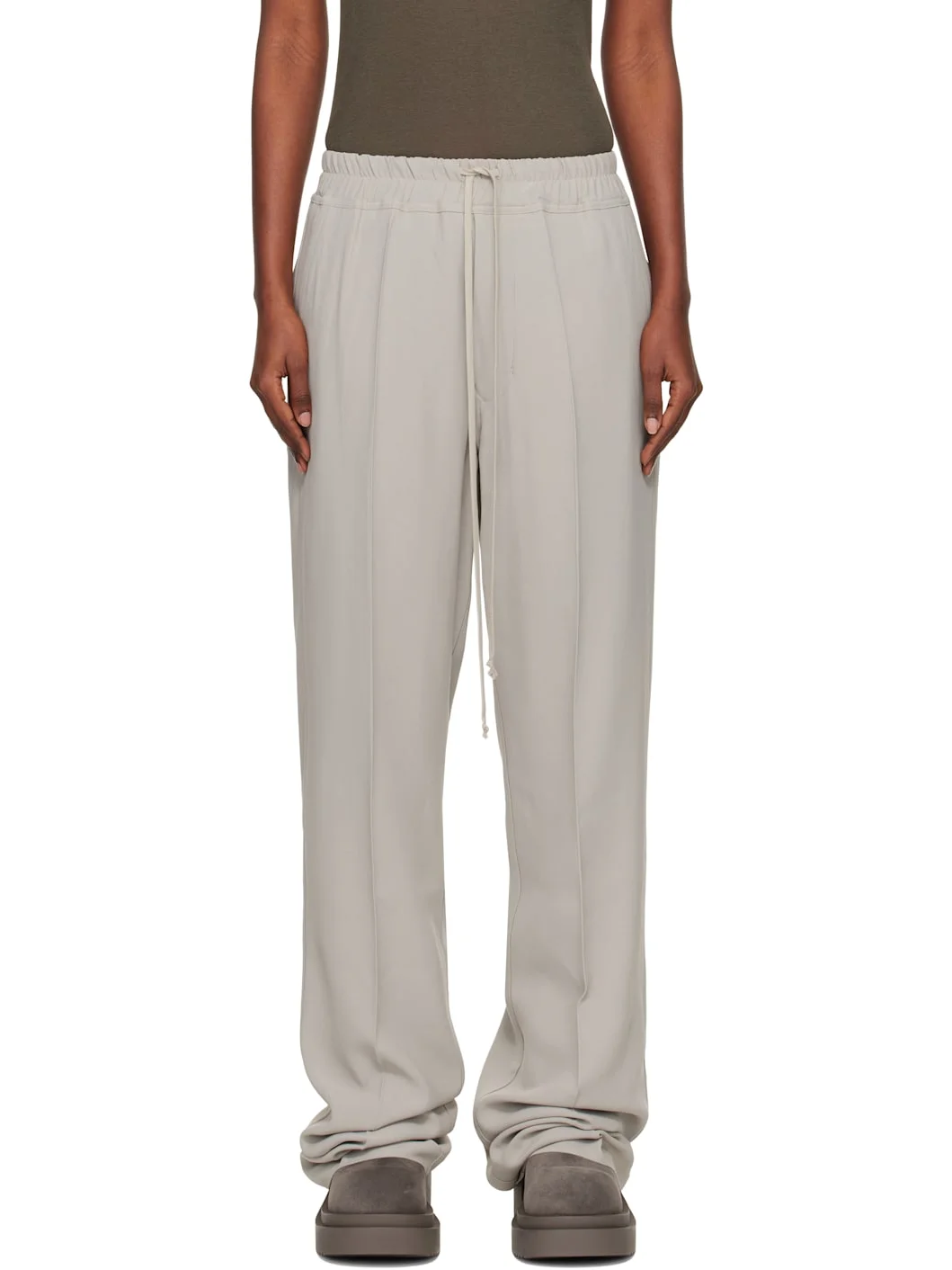 Viscose-blend cady crepe trousers. · FSC-certified viscose · Straight-leg · Drawstring at elasticized waistband · Four-pocket styling · Creased legs Supplier color: Pearl 53% viscose, 47% acetate. Made in Italy 252232F087004