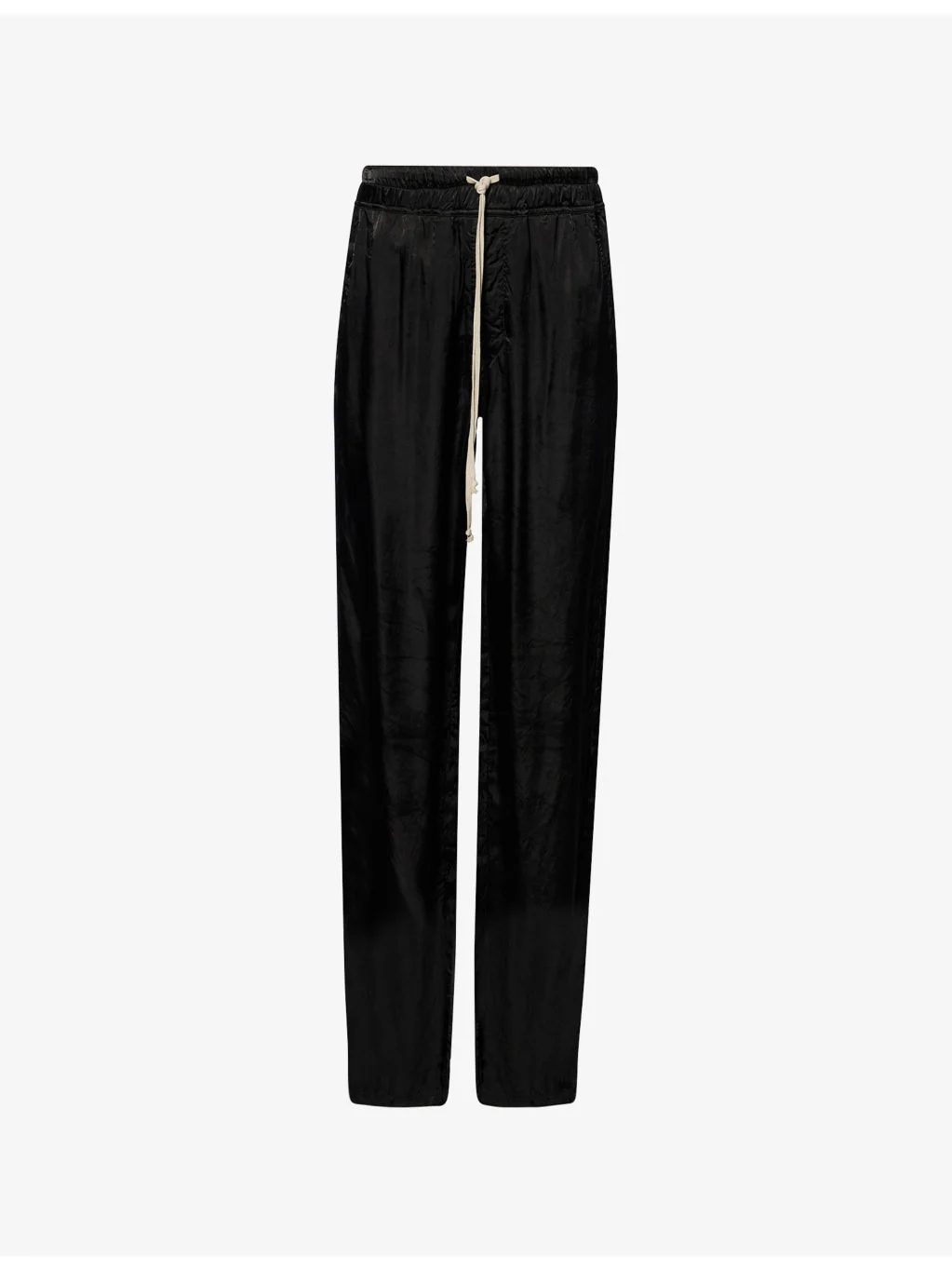 PRODUCT DETAILS - Rick Owens woven trousers - 100% cupro - Relaxed fit, high-rise, wide leg, drawstring elasticated waistband, two slip pockets and concealed button fastening at front, two buttoned pockets at back - Hand wash cold - Made in Italy - True to size - Size UK 8: rise 13in / 34cm, inside leg 37in / 94cm, leg opening 20in / 51cm - Model is 5ft 10in/1.78m and wears a size UK 8 - Lightweight, slight stretch Ref: R04583828