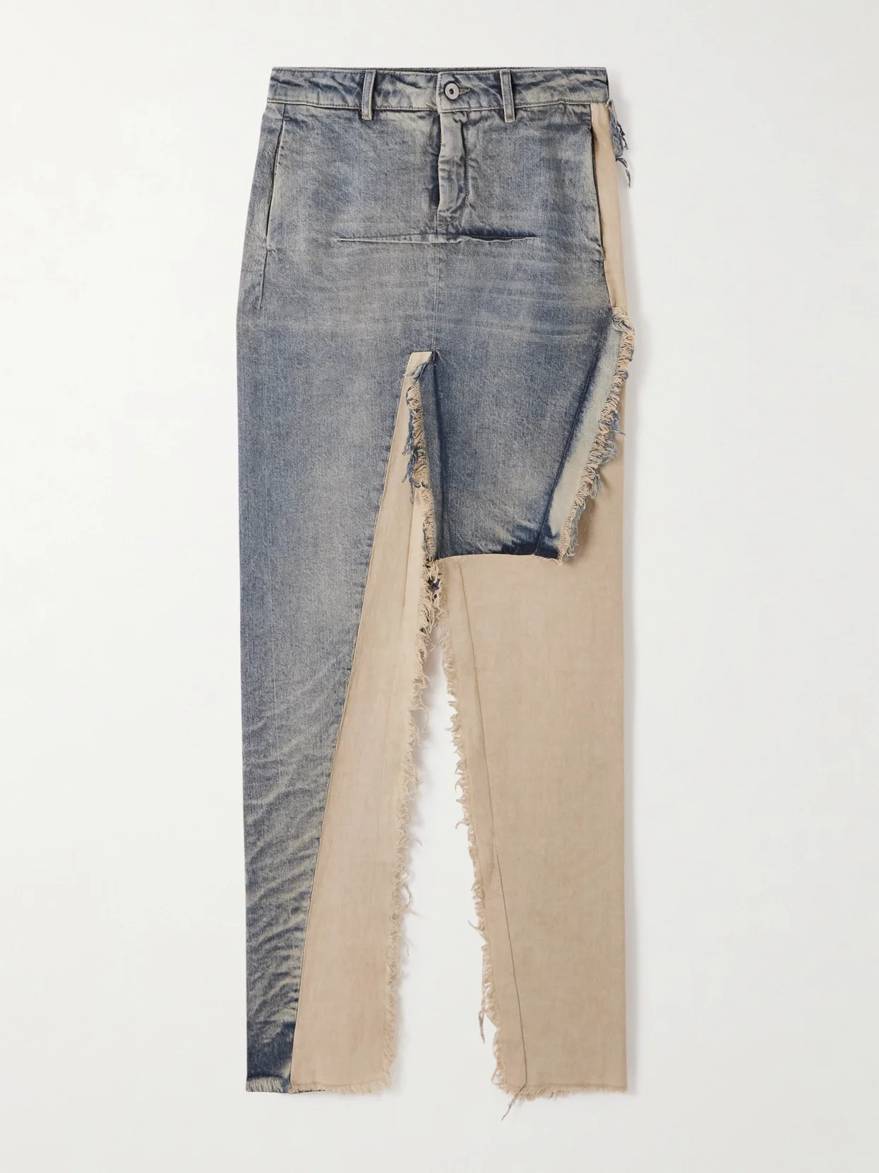Distressed Cotton-trimmed Denim Maxi Skirt
