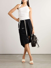 EDITORS'NOTES Rick Owens 'Dracca' skirt has a cool deconstructed design with an unfinished, asymmetric hem and plenty of off-kilter pockets. It's made from cotton-blend twill and has silver-tone hardware and the signature elongated drawstrings to further cinch the elasticated waist. SIZE & FIT Model measurements: - Fits true to size, take your normal size - Asymmetric hem, designed to be worn just below the natural waist - Elasticated at the waist for a flexible fit - Mid-weight, non-stretchy fabric - Model is 175cm/ 5'9" and is wearing an IT 40 - Bust: 78cm/ 31" - Waist: 62cm/ 24.5" - Hip: 92cm/ 36" DETAILS & CARE - Black cotton-blend twill - Slips on - 70% cotton, 30% polyamide - Dry clean
