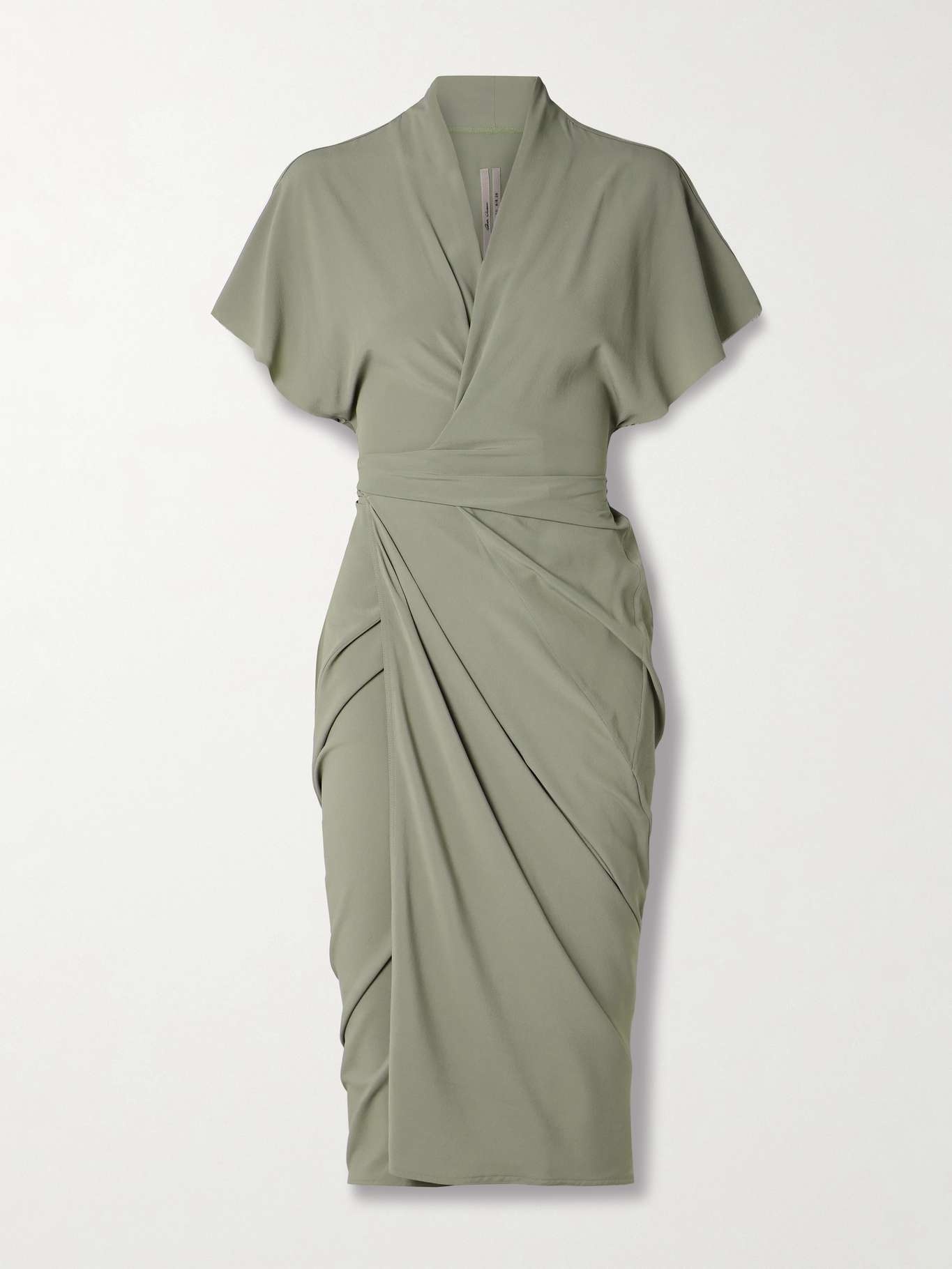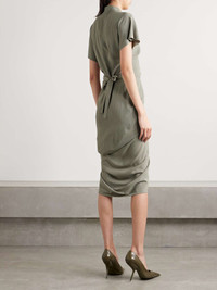 Rick Owens is all about effortlessly elegant pieces like this midi wrap dress. It's cut from fluid crepe that's beautifully draped at the front and ties at the waist. Size & Fit - Fits true to size, take your normal size - Designed for a slightly loose fit - Wraparound design, ties at the waist for an adjustable fit - Mid-weight, non-stretchy fabric - Model is 180cm/ 5'11" and is wearing a FR 36 Details & Care - Army-green crepe - Ties at waist - 64% acetate, 36% viscose - Dry clean - Designer color: Celadon