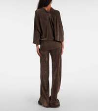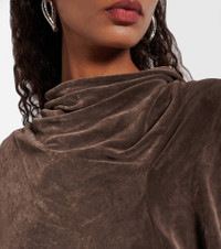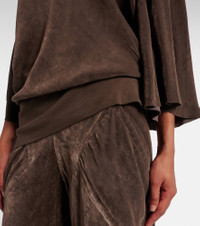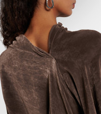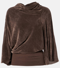 Crafted from mediumweight crepe, this top from Rick Owens features a draped collar with an asymmetric opening at the back. This design is finished with funnel sleeves and gathered detailing at the waist. Product Details - Material: 82% viscose, 18% silk - Care instructions: dry clean - Made in Italy - Designer color name: Drk Dust - Item color: brown - Trim: 100% cotton - Hem: raw - Item number: P01068282 Size & Fit - True to size - Designed for a loose fit - Elasticated hem - Stretchy fabric - Falls to the hip - Height of model is 179cm-70.5" and wears a size IT 40