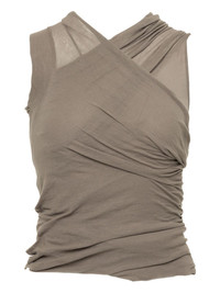 draped cross-front top Highlights - Grey - Draped design - Cross-front design - Sleeveless - Asymmetrical hem - Gathered detail Made in Italy Composition Organic Cotton 100% Washing instructions Read Manufacturer Guidelines