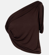 Aptly nicknamed The Lord of Darkness, Rick Owens brings gothic and industrial inspiration to everyday designs. This knitted top is shaped into a one-shoulder silhouette that softly drapes and is knotted at the side waist. Product Details - Material: 100% viscose - Care instructions: hand wash - Made in Italy - Designer color name: Raisin - Item color: brown - Item number: P01099164 Size & Fit - True to size - Cinched waist - Stretchy fabric - Falls to the hip - The model seen in the picture is 178cm-5'10" and wearing a size IT 40