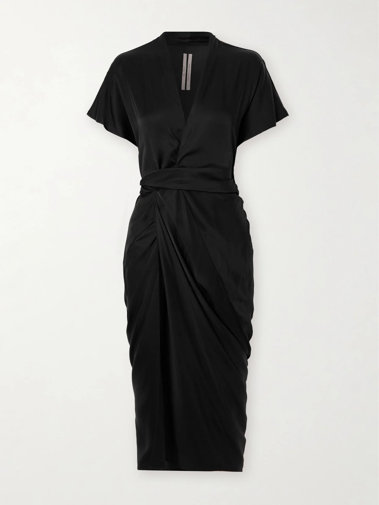 Rick Owens is all about effortlessly elegant pieces like this midi dress. It's cut from fluid satin that's beautifully draped at the front and ties at the waist.