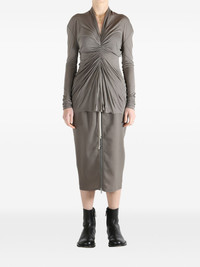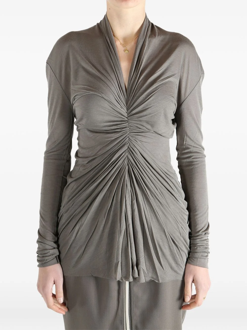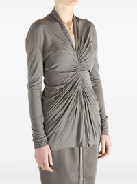draped top Highlights - Grey - V-neck - Long sleeves - Draped detailing - Gathered detailing - Tonal stitching Made in Italy Composition Viscose 88%, Silk 12% Washing instructions Read Manufacturer Guidelines