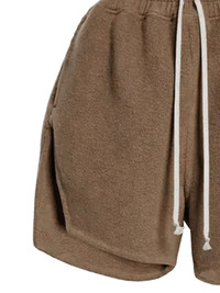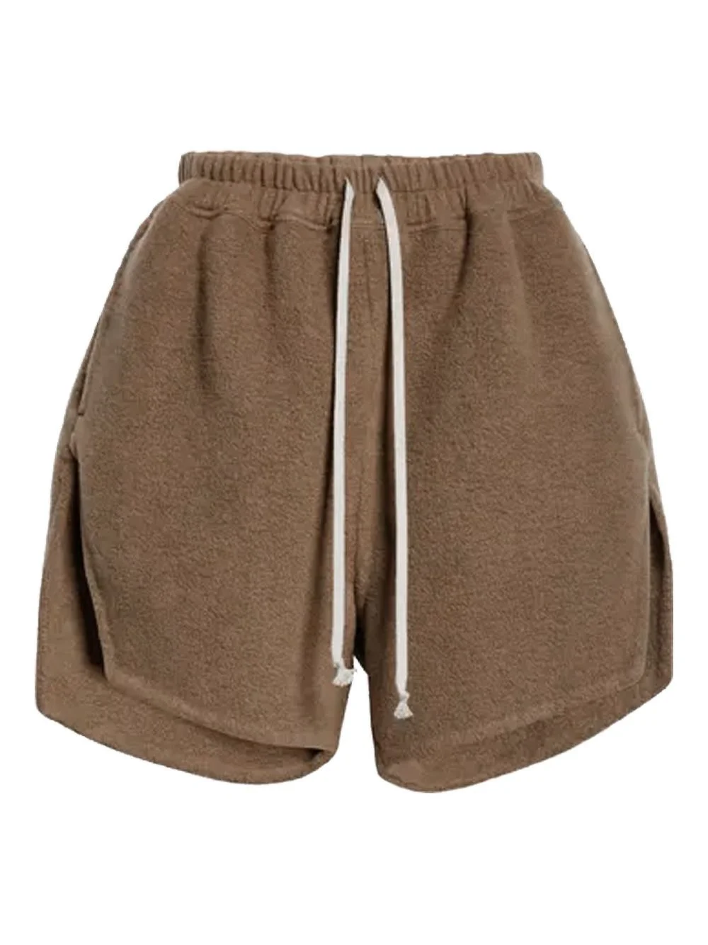drawstring fleece shorts Highlights - Brown - Fleece texture - Drawstring fastening - Side splits - Layered design - Relaxed fit Made in Italy Composition Virgin Wool 100% Washing instructions Read Manufacturer Guidelines