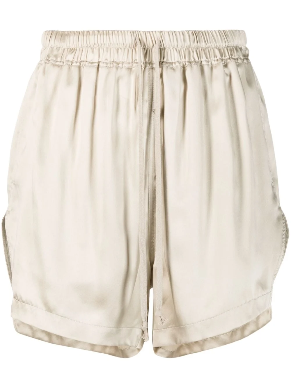 drawstring silk shorts Highlights - Light beige - Silk - High-shine finish - Elasticated drawstring waistband - Two side slit pockets - Curved hem Made in Italy Composition Silk 100% SIZE & FIT Model measurements Height 5 ft 10 in(1.77 m) Bust/Chest 32.28 in(82 cm) Hips 35.03 in(89 cm) Waist 25.19 in(64 cm) FittingInformation Designed with a voluminous wide-leg fit The elasticated waist allows for a comfortable fit Made from a lightweight non-stretch fabric This piece fits true to size – take your usual size Washing instructions Dry Clean Only