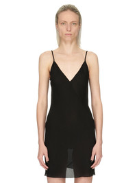 RICK OWENS SS23 EDFU SLIP MINI DRESS IN PUCKERED COCOON CRÊPE THIS SLIP MINI DRESS IS MID-THIGH-LENGTH AND HAS A V NECK, SPAGHETTI STRAPS, SCOOP BACK AND FRONT AND BACK BIAS SEAMS THIS LIGHTWEIGHT VISCOSE AND SILK BLEND CRÊPE HAVE A PUCKERED TEXTURED AND I S WOVEN FROM FSC®CERTIFIED VISCOSE WHICH ENSURES THAT THE FIBERS ARE PRODUCED FROM RESPONSIBLY MANAGED PLANTATIONS AND NO DEFORESTATION OCCURS - COLOR: BLACK - MODEL WEARS SIZE 40 - MODEL IS 181CM TALL