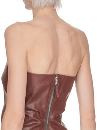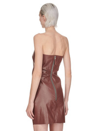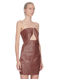 RICK OWENS FW24 PORTERVILLE PRONG MINI IN THROAT COATED STRETCH DENIM THIS PRONG MINI IS MID-THIGH LENGTH. IT FEATURES A RUCHED BODY GATHERING INTO THE BUST, WHICH FEATURES A BONED GEOMETRIC CUT OUT FRONT, AND A TIGHT FITTING SKIRT THIS LIGHTWEIGHT STRETCH DENIM IS COVERED WITH A SEMI-SHINY AND SOFT COATING. THE INDIGO COLOR AND STRUCTURE OF THE DENIM SHINES THROUGH THE COLOR OF THE COATING CREATING A MULTILAYERED AND IRREGULAR COLORATION. THE NATURAL ASPECTS OF THIS FABRIC MEANS THE COATING HAS PEELED OFF IN CERTAIN AREAS, EXPOSING THE UNDERLAYING MATERIAL AND WILL CONTINUE TO DO SO WITH WEAR AND ABRASION. THIS IS AN INHERENT CHARACTERISTIC OF THIS TYPE OF TREATMENT AND IS A DESIRED A VISUAL ASPECT WHICH ADDS TO THE UNIQUENESS OF EACH PIECE AND SHOULD NOT BE CONSIDERED A DEFECT - COLOR: THROAT - MATERIAL: 91% COTTON + 6% ELASTOMULTIESTER + 3% RUBBER - INNER BUSTIER 97% COTTON + 3% ELASTANE - MODEL IS 181CM TALL - MODEL WEARS SIZE 38