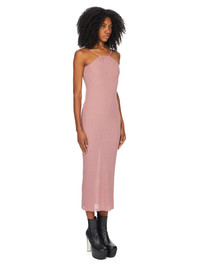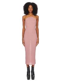 RICK OWENS SS24 LIDO SKORPIO DRESS IN DUSTY PINK VISCOSE SILK RIB JERSEY THIS SKORPIO TANK DRESS IS MID-THIGH LENGTH. IT HAS A RAISED NECKLINE AT THE CENTRE FRONT NECK, AND TWO STRAPS THAT RUN DIAGONALLY ACROSS THE SHOULDER AND DOWN THE BACK. IT FEATURES THE SIGNATURE SEAM RUNNING DOWN THE CENTRE BACK SPINE THIS LIGHTWEIGHT VISCOSE AND SILK RIB JERSEY HAS A DISTINCT RIB PATTERN AND SOFT HANDFEEL.THIS JERSEY IS MADE FROM FSC® CERTIFIED VISCOSE WHICH ENSURES THAT THE FIBERS ARE PRODUCED FROM RESPONSIBLY MANAGED SOURCES AND NO DEFORESTATION OCCURS WE STRIVE TO KEEP OUR PRODUCTION AS LOCAL AS POSSIBLE. THE FULL MANUFACTURING CYCLE OF THIS PRODUCT, FROM THE MATERIAL KNITTING TO SEWING AND FINISHING, WAS UNDERTAKEN CLOSE TO OUR HOME BASE IN CONCORDIA, ITALY. - COLOR: DUSTY PINK - MATERIAL: 88% VISCOSE + 12% SILK - MODEL IS 181CM TALL - MODEL WEARS SIZE 40