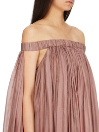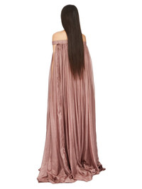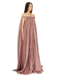 RICK OWENS SS24 LIDO MEDUSA GOWN IN DUSTY PINK WASHED SILK HABOTAI THIS MEDUSA GOWN TRAILS FLOOR-LENGTH WITH A VOLUMINOUS FIT. IT IS OFF-THE-SHOULDERS, WITH A GATHERED BAND THAT CREATES SHIRRED ARM HOLES, AND RUNS ACROSS THE CHEST AND BACK, WITH VOLUMINOUS FABRIC FALLING TO THE FLOOR THIS LIGHTWEIGHT AND FLUID SILK HABOTAI HAS A SOFT HANDFEEL AND WASHED FINISH. IT IS WOVEN IN THE COMO REGION OF ITALY KNOWN FOR ITS HERITAGE OF SILK PRODUCTION- COLOR: DUSTY PINK - MATERIAL: 100% SILK - MODEL IS 181CM TALL - MODEL WEARS SIZE 40