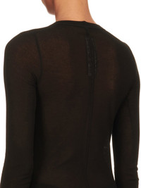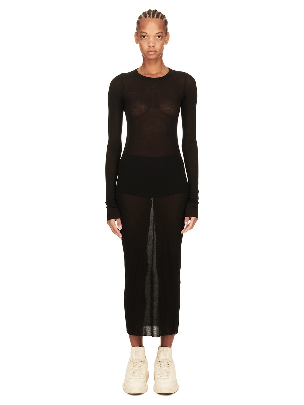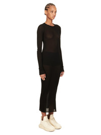 RICK OWENS FW24 PORTERVILLE LS DRESS IN BLACK VISCOSE SILK RIB JERSEY THIS LS DRESS IS MID-CALF LENGTH, WITH A SLIM FIT AND LONG SLEEVES. IT HAS A RIBBED ROUND NECK, RAW CUT HEM AND CUFF. IT FEATURES THE SIGNATURE SINGLE SEAM RUNNING DOWN CENTRE BACK SPINE THIS LIGHTWEIGHT VISCOSE AND SILK RIB JERSEY HAS A DISTINCT RIB PATTERN AND SOFT HANDFEEL.THIS JERSEY IS MADE FROM FSC® CERTIFIED VISCOSE WHICH ENSURES THAT THE FIBERS ARE PRODUCED FROM RESPONSIBLY MANAGED SOURCES AND NO DEFORESTATION OCCURS WE STRIVE TO KEEP OUR PRODUCTION AS LOCAL AS POSSIBLE. THE FULL MANUFACTURING CYCLE OF THIS PRODUCT, FROM THE MATERIAL KNITTING TO SEWING AND FINISHING, WAS UNDERTAKEN CLOSE TO OUR HOME BASE IN CONCORDIA, ITALY. - COLOR: BLACK - MATERIAL: 88% VISCOSE + 12% SILK - MODEL IS 181CM TALL - MODEL WEARS SIZE 40