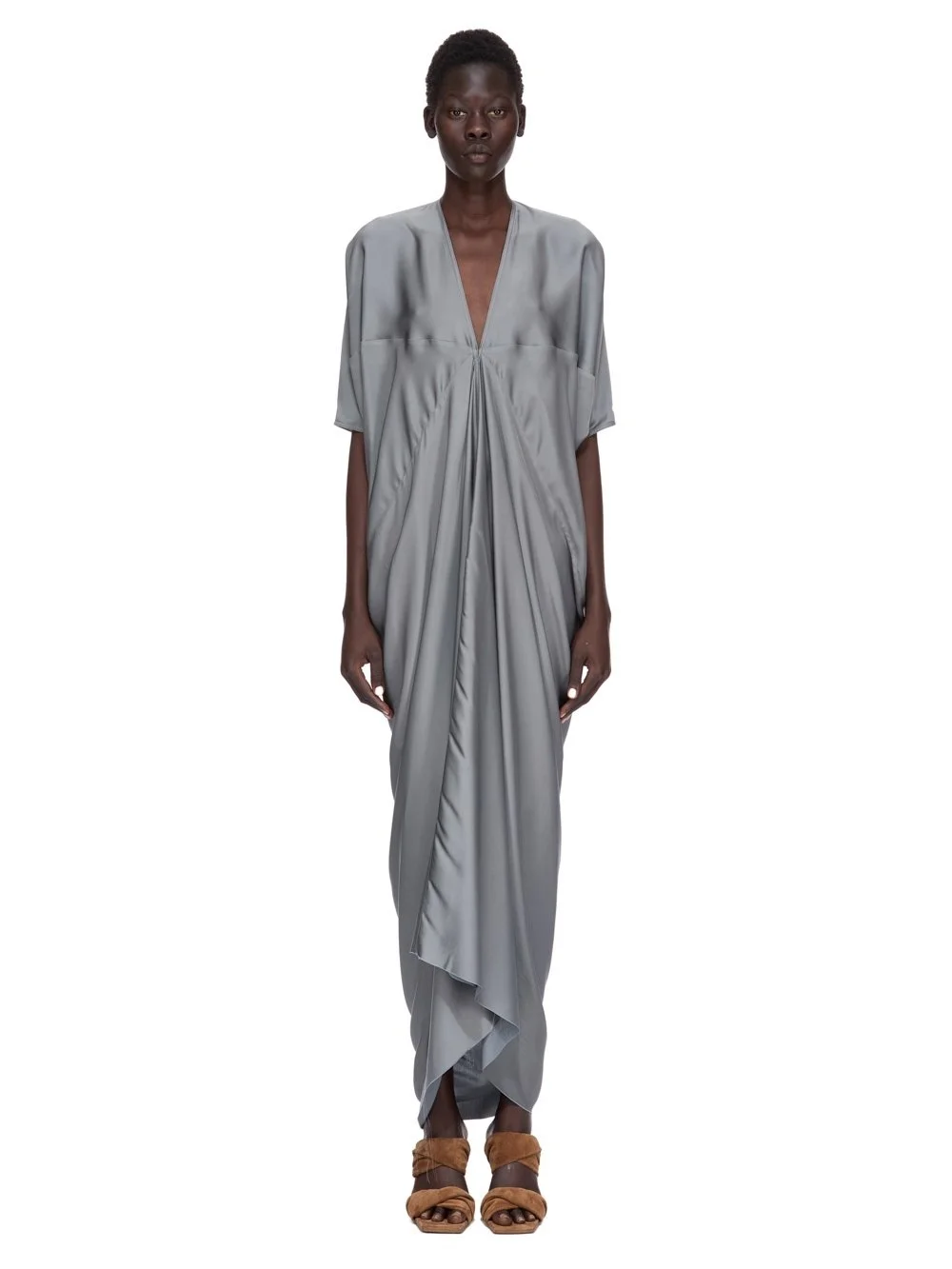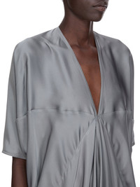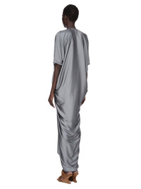 RICK OWENS FW25 CONCORDIANS KITE GOWN IN WASHED INDIGO WASHED CHARMEUSE THIS KITE GOWN IS FLOOR LENGTH AT THE BACK WITH A RISE TO CALF IN THE CENTRE FRONT. IT HAS SLIM STRAPS CREATING A V NECK AND IT FEATURES CENTRE FRONT DRAPING GATHERED INTO A SEAM COMING TO A POINT BETWEEN THE BUST. IT HAS A VOLUMINOUS FIT WITH A SOFTLY DRAPING BACK THIS LIGHTWEIGHT AND FLUID CHARMEUSE HAS A SEMI-SHINY SURFACE AND WASHED FINISH THIS FABRIC IS MADE FROM FSC® CERTIFIED VISCOSE WHICH ENSURES THAT THE FIBERS ARE PRODUCED FROM RESPONSIBLY MANAGED SOURCES AND NO DEFORESTATION OCCURS COLOR: WASHED INDIGO MATERIAL: 61% ACETATE + 39% VISCOSE MODEL IS 181CM TALL MODEL WEARS SIZE 40