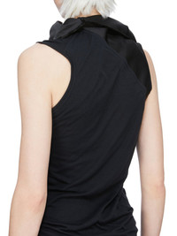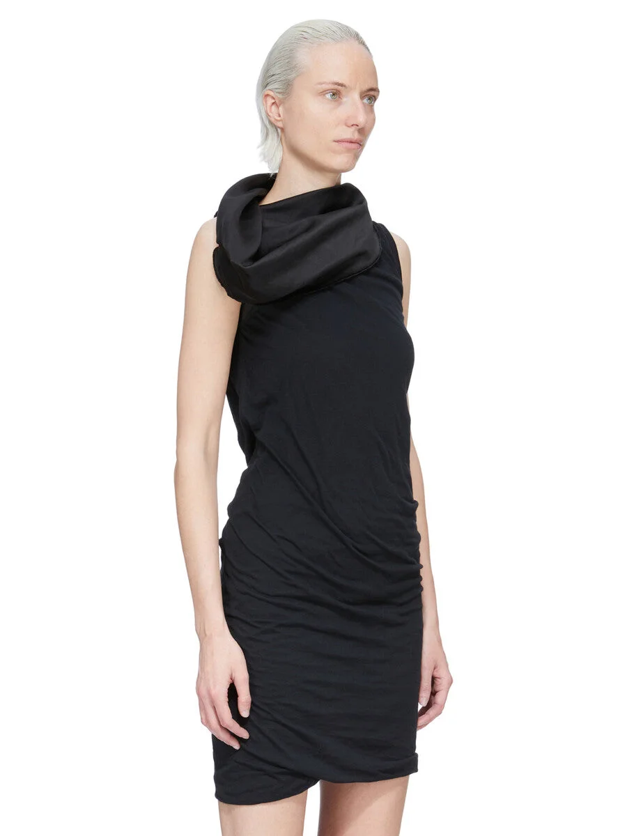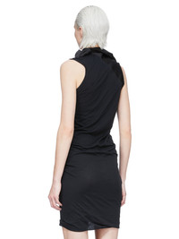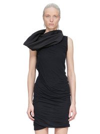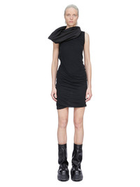 RICK OWENS SS26 TEMPLE ONE SHOULDER SLIP MINI DRESS IN BLACK CUPRO SATIN THIS ONE SHOULDER SLIP MINI DRESS IS THIGH LENGTH. IT FEATURES ONE STRAP THAT IS SLIGHTLY OFF-CENTER AND SITS ACROSS THE LEFT SHOULDER. IT ATTACHES TO THE POINTS OF THE UPPER BODY. THIS LIGHTWEIGHT AND FLUID CUPRO SATIN HAS A GLOSSY SURFACE, A SOFT HANDFEEL AND WASHED FINISH THIS FABRIC IS MADE USING CUPRO WHICH IS BIODEGRADABLE AND 100% PLANT BASED. AS IT’S MADE FROM COTTON WASTE, CUPRO HELPS FIND A PURPOSE TO FIBERS THAT WOULD OTHERWISE BE DISCARDED COLOR: BLACK MATERIAL: 100% CUPRO MODEL IS 181CM TALL MODEL WEARS SIZE 40