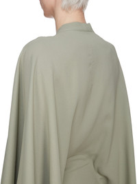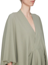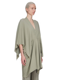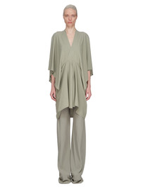 RICK OWENS SS25 HOLLYWOOD HALF MOON MINI IN CELADON CADY THIS HALF MOON MINI IS MID-THIGH LENGTH, RAISING SLIGHTLY AT THE FRONT. IT HAS A CROSS-OVER V NECK, THAT MEETS A FITTED, ROUNDED, HALF MOON WAISTLINE. IT HAS A VOLUMINOUS FIT, AND HANGS WITH WIDE CAPE-LIKE SLEEVES, WITH POINTS THAT START AT THE ELBOW AND FINISH AT WRIST LENGTH. THIS MEDIUMWEIGHT CADY CREPE IS FLUID WITH A CRISP SURFACE TEXTURE AND A COOL SLICK BACKSIDE. THIS FABRIC IS MADE FROM FSC® CERTIFIED VISCOSE AND ACETATE WHICH ENSURES THAT THE FIBERS ARE PRODUCED FROM RESPONSIBLY MANAGED SOURCES AND NO DEFORESTATION OCCURS COLOR: CELADON MATERIAL: 84% VISCOSE + 16% ACETATEINSIDE BAND 84% NYLON + 16% ELASTANE MODEL IS 181CM TALL MODEL WEARS SIZE 40
