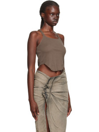 Lightweight garment-dyed GOTS-certified organic cotton jersey tank top. · Rib knit scoop neck · Raw edge at cropped hem · Central seam at back · Logo-woven webbing strap at interior Supplier color: Dust