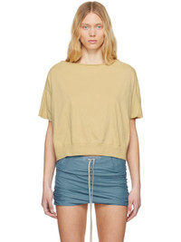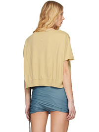 GOTS-certified organic cotton jersey T-shirt. · Rolled edge at boatneck · Topstitching at front hem · Cropped rib-knit hem · Seam at dropped shoulders · Raw edge at cuffs · Integrated logo-woven strap at interior Supplier color: Parchment 100% cotton. Made in Italy 251126F110054