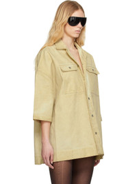 Foil-coated and garment-dyed organic cotton canvas shirt. Fading throughout. · GOTS-certified organic cotton · Open spread collar · Button closure · Flap pockets · Logo-woven webbing strap at interior Each item is unique. Please note that coloration and finishing may vary. Supplier color: Parchment 100% organic cotton. Made in Italy 251126F109002