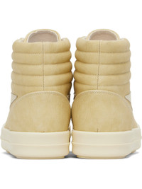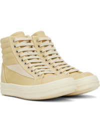 High-top GOTS-certified organic cotton canvas sneakers. · Lace-up closure · Padded and quilted collar · Calfskin suede applique at sides · Twill lining · Treaded rubber sole Supplier color: Parchment/Milk/Milk Upper: textile, calfskin. Sole: rubber. Made in Italy 251126F127029