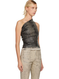 Foil-coated 10 oz stretch denim top. · Frayed edges throughout · ZDHC-certified denim · Single-shoulder and draped construction · Cropped hem · Zip closure at side seam · Logo-woven webbing strap at interior Supplier color: Black washed foil 91% cotton, 6% elastane, 3% rubber. Made in Italy 252126F111000
