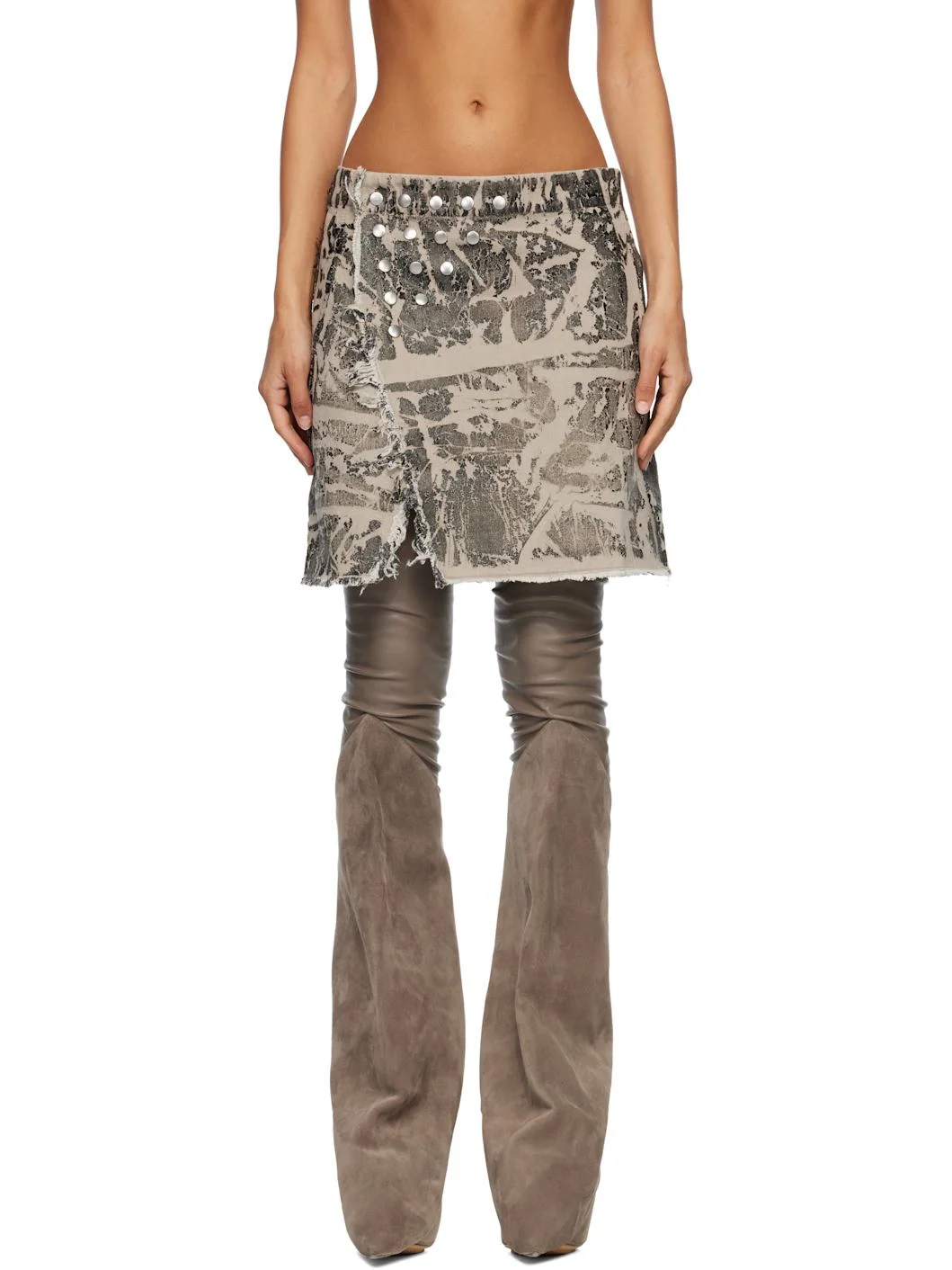 Foil-coated 13 oz non-stretch denim miniskirt. · ZDHC-certified denim · Wrap construction · Frayed edges throughout · Press-stud fastenings at front · Four-pocket styling Supplier color: Black washed foil 100% cotton. Made in Italy 252126F090003