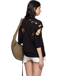 GOTS-certified organic cotton jersey T-shirt. Distressing throughout. · Raw edge at rib-knit crewneck and hem · Dropped saddle shoulders · Central seam at back · Logo-woven webbing strap at interior Supplier color: Black 100% organic cotton. Made in Italy 251126F110009