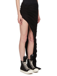 DRKSHDW SS25 HOLLYWOOD SOFT EDFU SKIRT LONG IN BLACK COTTON GAUZE JERSEY THIS SOFT EDFU SKIRT TRAILS FLOOR LENGTH AND HAS A LONG TRAIN. IT HAS AN ELASTICIZED WAISTBAND A TIGHT FIT. IT DRAPES AND WRAPS AROUND THE HIPS, AND GATHERS INTO A SEAM ON THE RIGHT THIGH. IT OPENS TO A HIGH SPLIT AND TAPERS TO A NARROW, FLOOR TRAILING, TIP THIS LIGHTWEIGHT AND AIRY COTTON GAUZE JERSEY IS SEMI TRANSPARENT AND HAVE A SOFT WASHED HANDFEEL. THIS JERSEY IS GARMENT DYED THIS FABRIC IS MADE USING GOTS CERTIFIED ORGANIC COTTON WHICH MEANS THE NATURAL FIBER IS GROWN WITHOUT HARMFUL CHEMICALS, LEAVING OUR SOIL, AIR AND WATER CLEANER FROM CONTAMINATES COLOR: BLACK MATERIAL: 100% COTTON MODEL IS 181CM TALL MODEL WEARS SIZE S