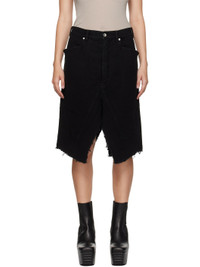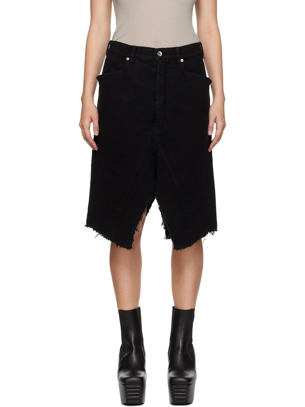 Garment-dyed GOTS-certified organic cotton moleskin midi skirt. · Belt loops · Four-pocket styling · Zip-fly · Central vent at front and back · Raw edge at asymmetric hem Supplier color: Black 100% organic cotton. Made in Italy 242126F092005