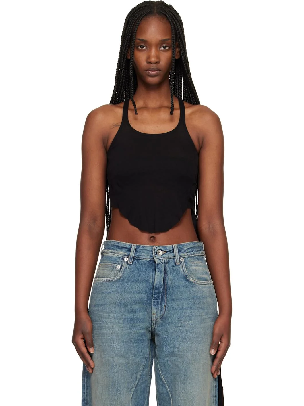 GOTS-certified organic cotton jersey tank top. · Scoop neck · Raw edge at curved hem · Integrated logo-woven strap at interior side seam Supplier color: Black 100% cotton. Made in Italy 261126F111011