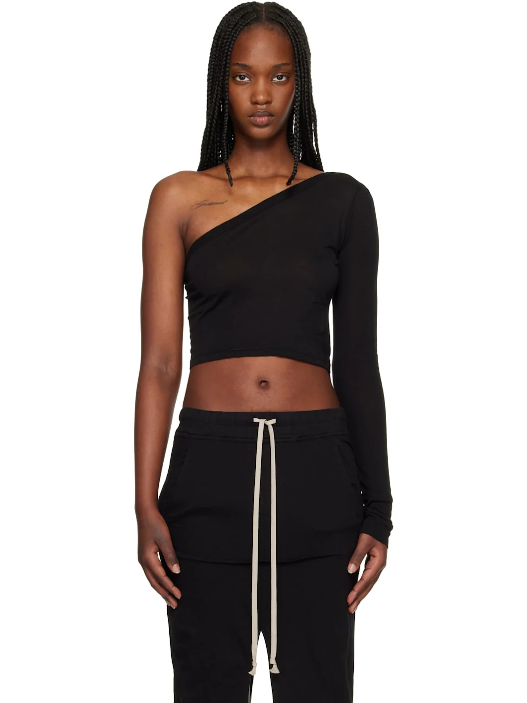 Lightweight semi-sheer organic cotton jersey T-shirt. · Garment-dyed · GOTS-certified organic cotton · Single-shoulder construction · Cropped hem · Raw edge at cuff · Central seam at back · Logo-woven strap at interior Supplier color: Black 100% organic cotton. Made in Italy 261126F111002