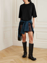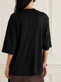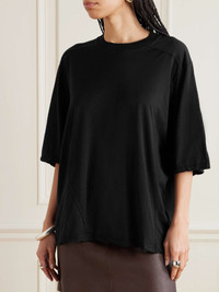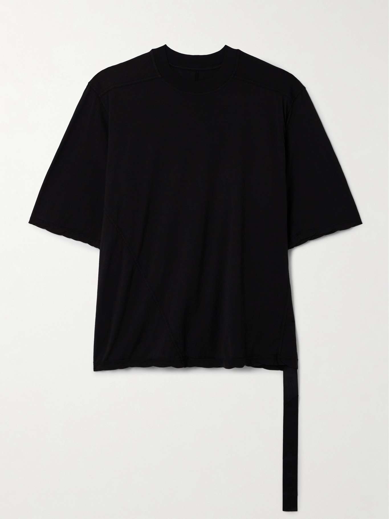 EDITORS'NOTES Rick Owens' 'Walrus' T-shirt is designed in a generous shape with an exaggerated tie that dangles at one side. It's made from panels of cotton-jersey and looks cool either partially tucked or left loose. SIZE & FIT Product measurements: - Comfortably fits those who are between a size XSmall-XLarge and all body shapes - Lightweight, stretchy fabric - Model is 177cm/ 5'10" and normally wears a size Small - Bust: 120cm / 47.2in - Sleeve: 44cm / 17.3in - Length: 68cm / 26.8in - Shoulder: 46cm / 18.1in DETAILS & CARE - Black cotton-jersey - Slips on - 100% cotton - Hand wash