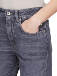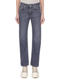 DRKSHDW FW25 CONCORDIANS FOG CUT IN 13OZ STONE WASHED GREY DENIM THESE FOG CUT ARE AN ABOVE ANKLE LENGTH, 6-POCKET JEAN WITH A LOW RISE AND REGULAR FIT. THEY HAVE A CONCEALED SILVER ZIPPER FLY WITH TOP BUTTON. THEY FEATURE CROTCH AND KNEE WHISKERING. THIS MEDIUMWEIGHT STONE WASHED GREY DENIM IS MADE ON A 13OZ JP GREY AND BLACK DENIM WOVEN IN FUKUYAMA PREFECTURE BY A MILL FOUNDED IN 1893. THE READY GARMENT IS STONE WASHED. THIS GARMENT IS TREATED IN AN ITALIAN WASH HOUSE BASED IN THE VENETO AREA OF ITALY, THAT PRODUCES IN SMALLER TREATMENT BATHS TO REDUCE WATER WASTE AND UTILIZE A WATER PURIFYING PROCESS THAT ENABLES THEM TO RECYCLE A PORTION OF THE WATER USED. ALL OF OUR DENIM WASHES ARE ZDHC CERTIFIED. COLOR: WASHED GREY MATERIAL: 100% COTTON POCKETS LINING: 52% POLYESTER + 48% COTTON MODEL IS 181CM TALL MODEL WEARS SIZE 26