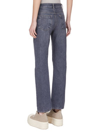 DRKSHDW FW25 CONCORDIANS FOG CUT IN 13OZ STONE WASHED GREY DENIM THESE FOG CUT ARE AN ABOVE ANKLE LENGTH, 6-POCKET JEAN WITH A LOW RISE AND REGULAR FIT. THEY HAVE A CONCEALED SILVER ZIPPER FLY WITH TOP BUTTON. THEY FEATURE CROTCH AND KNEE WHISKERING. THIS MEDIUMWEIGHT STONE WASHED GREY DENIM IS MADE ON A 13OZ JAPANESE GREY AND BLACK DENIM WOVEN IN FUKUYAMA PREFECTURE BY A MILL FOUNDED IN 1893. THE READY GARMENT IS STONE WASHED THIS GARMENT IS TREATED IN AN ITALIAN WASH HOUSE BASED IN THE VENETO AREA OF ITALY, THAT PRODUCES IN SMALLER TREATMENT BATHS TO REDUCE WATER WASTE AND UTILIZE A WATER PURIFYING PROCESS THAT ENABLES THEM TO RECYCLE A PORTION OF THE WATER USED. ALL OF OUR DENIM WASHES ARE ZDHC CERTIFIED COLOR: WASHED GREY MATERIAL: 100% COTTON POCKETS LINING: 52% POLYESTER + 48% COTTON MODEL IS 181CM TALL MODEL WEARS SIZE 26