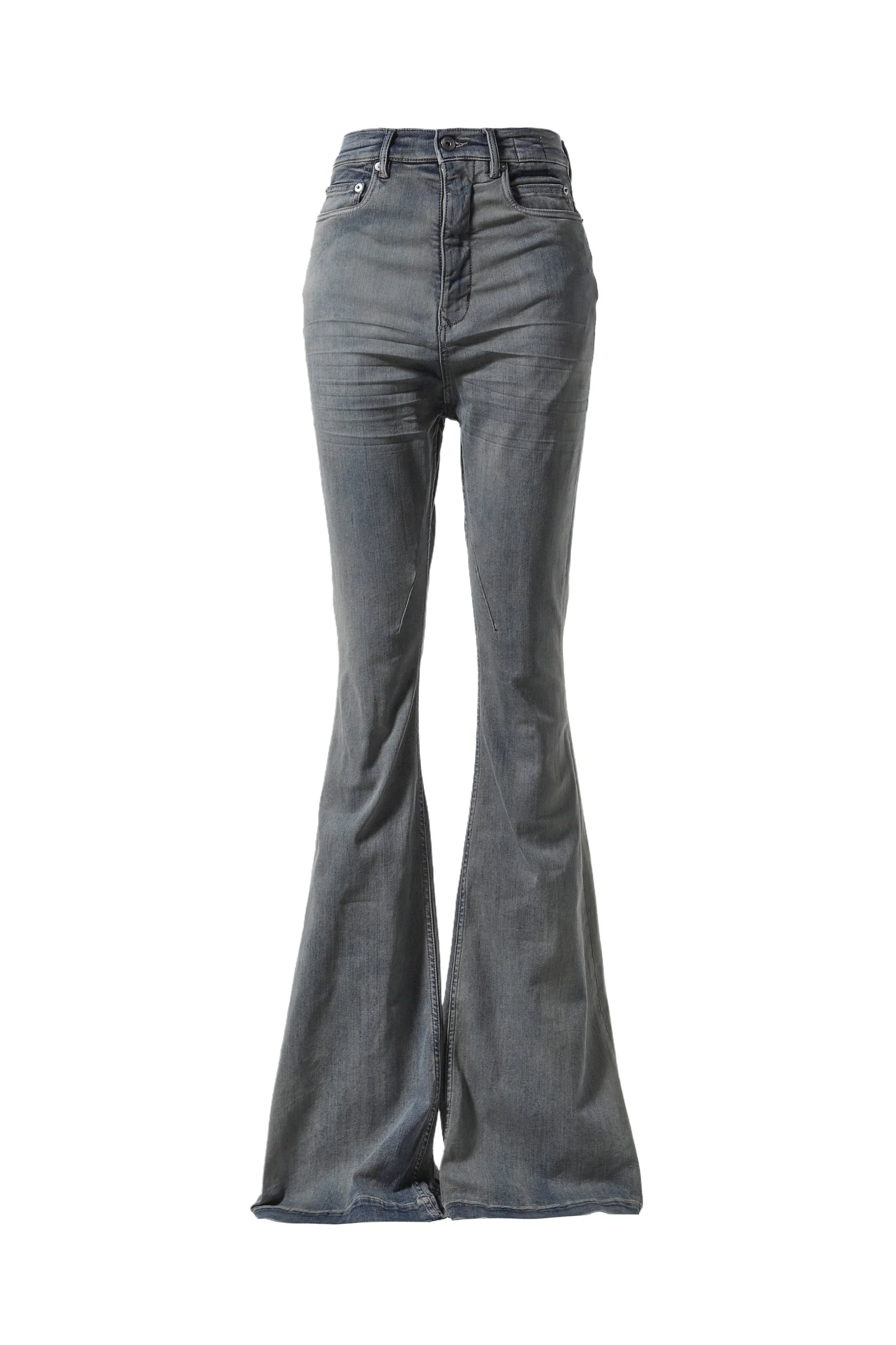 Sizing Size Waist Front Rise Inseam Full Length Thigh Hem 25 60cm 36cm 95cm 128cm 26cm 30cm 26 62cm 37cm 95.5cm 129cm 26.5cm 31cm Product Detail - Gender: MEN - Designer: Rick Owens DRKSHDW - Categories: WOMENS FLARE JEANS - Material: COTTON 91%, ELASTANE 6%, RUBBER 3% - Model Number: ds02d2311sky46