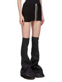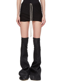 DRKSHDW SS25 HOLLYWOOD BUDS IN BLACK COTTON GAUZE JERSEY THESE BUDS ARE MID-THIGH LENGTH. THEY HAVE AN ELASTICIZED WAISTBAND WITH DRAWSTRING, TWO SIDE POCKETS, AND ARE DOUBLE LAYERED, CREATING A SLIGHTLY DRAPED SHAPE THIS LIGHTWEIGHT AND AIRY COTTON GAUZE JERSEY IS SEMI TRANSPARENT AND HAVE A SOFT WASHED HANDFEEL. THIS JERSEY IS GARMENT DYED THIS FABRIC IS MADE USING GOTS CERTIFIED ORGANIC COTTON WHICH MEANS THE NATURAL FIBER IS GROWN WITHOUT HARMFUL CHEMICALS, LEAVING OUR SOIL, AIR AND WATER CLEANER FROM CONTAMINATES COLOR: BLACK MATERIAL: 100% COTTON MODEL IS 181CM TALL MODEL WEARS SIZE S