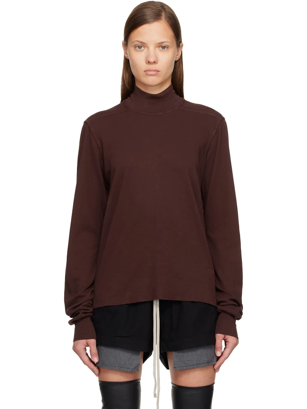 GOTS-certified organic cotton jersey turtleneck. · Rib-knit collar and cuffs · Raw edge at hem · Central seam at back · Integrated logo-woven strap at interior Supplier color: Scab 100% organic cotton. Made in Italy 252126F099002