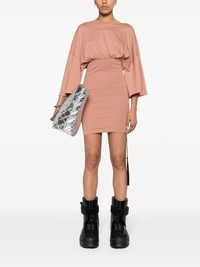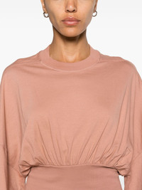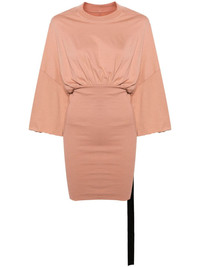 Cinched Tommy ruched minidress Highlights - Salmon pink - Organic cotton - Fine knit - Ribbed trim - Ruched detailing - Crew neck - Drop shoulder - Three-quarter length sleeves - Fitted waistline - Straight hem - Above-knee length - This item is made from at least 50% organic materials. - Learn more about what makes a product conscious on our conscious criteria page Made in Italy Composition Organic Cotton 100% SIZE & FIT Model measurements Height 5 ft 10 in(1.78 m) Bust/Chest 32.67 in(83 cm) Hips 36.22 in(92 cm) Waist 24.4 in(62 cm) FittingInformation Designed for a loose fit at the chest with a close fit over the waist and hips Made from a midweight non-stretch fabric, this piece offers minimal elasticity when worn This piece fits true to size – take your usual size