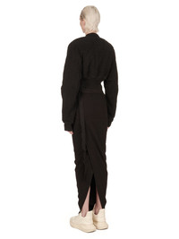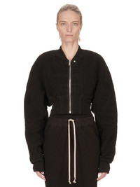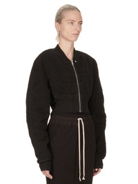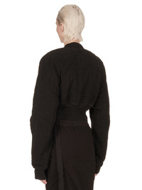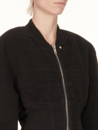 DRKSHDW FW24 PORTERVILLE COLLAGE BOMBER IN BLACK COTTON MOLESKIN THIS COLLAGE BOMBER IS CROPPED WAIST LENGTH AND HAS LONG SLEEVES. IT HAS A CENTRE FRONT ZIPPER WITH PLACKET WITH CREATCH STITCHING AND TOP SNAP DETAIL. IT FEATURES GEOMETRIC GIRDERED SHOULDERS, A FRONT AND BACK YOKE AND HAS A RIBBED NECK, CUFFS AND WIDE WAISTBAND. THIS VERSION IS PADDED THIS MEDIUMWEIGHT COTTON MOLESKIN IS GARMENT DYED WITH A SPECIALIZED TECHNIQUE WHICH CREATES THE IRREGULAR COLORATION. IT HAS A SOFT AND BRUSHED HANDFEEL. THE NATURAL ASPECTS OF THIS TREATMENT MEANS THAT THE FADED PARTS ARE DIFFERENT IN EACH GARMENT. THIS IS AN INHERENT CHARACTERISTIC OF THIS TYPE OF TREATMENT AND IS A DESIRED A VISUAL ASPECT WHICH ADDS TO THE UNIQUENESS OF EACH PIECE. THIS FABRIC IS MADE USING GOTS CERTIFIED ORGANIC COTTON WHICH MEANS THE NATURAL FIBER IS GROWN WITHOUT HARMFUL CHEMICALS, LEAVING OUR SOIL, AIR AND WATER CLEANER FROM CONTAMINATES - COLOR: BLACK - MATERIAL: 100% COTTON - KNIT RIB COLLAR WRIST BAND AND BOTTOM 100% COTTON - BODY LINING 100% COTTON - SLEEVES LINING 100% NYLON - PADDING 90% POLYESTER+ 10% ACRYLIC - MODEL IS 181CM TALL - MODEL WEARS SIZE S