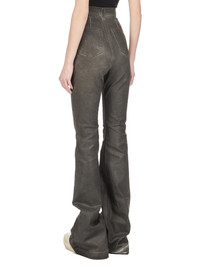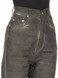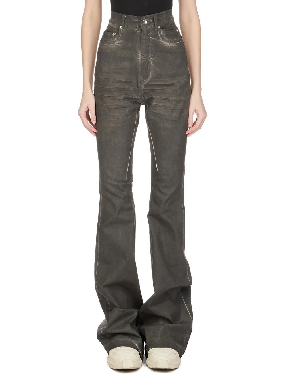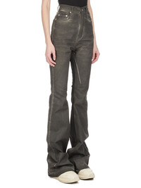 DRKSHDW FW25 CONCORDIANS BOLAN BOOTCUT IN DARKDUST OVERDYED FOIL STRETCH DENIM THIS BOLAN BOOTCUT IS A HIGH WAISTED, SLIM FIT 6 POCKET JEAN WITH A FLOOR-LENGTH BOOT CUT. THEY HAVE A CONCEALED ZIPPER FLY WITH TOP BUTTON, A WAISTBAND WITH POCKET RIVETS AND REAR PATCH POCKETS WITH TOPSTITCHING. THEY FEATURE CREASED WHISKERING AT THE CROTCH. THIS LIGHTWEIGHT STRETCH DENIM IS OVERDYED WITH A CLEAR FOIL OVERLAY THAT CREATES THE WAXY TOUCH THIS GARMENT IS TREATED IN AN ITALIAN WASH HOUSE BASED IN THE VENETO AREA OF ITALY, THAT PRODUCES IN SMALLER TREATMENT BATHS TO REDUCE WATER WASTE AND UTILIZE A WATER PURIFYING PROCESS THAT ENABLES THEM TO RECYCLE A PORTION OF THE WATER USED. ALL OF OUR DENIM WASHES ARE ZDHC CERTIFIED COLOR: DARKDUST MATERIAL: 90% COTTON + 7% POLYESTER + 3% RUBBER FIBER MODEL IS 181CM TALL MODEL WEARS SIZE S