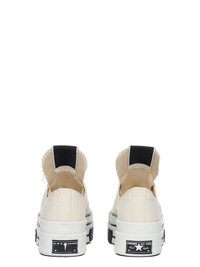 CONVERSE X DRKSHDW DBL DRKSTAR OX IN NATURAL THIS LACED LOW TOP SHOE IS BASED ON THE CLASSIC CONVERSE 70’S CHUCKS. IT FEATURES A SIGNATURE DRKSHDW ELONGATED TONGUE WITH A BRANDED, WRAP AROUND, WOVEN LABEL BEARING THE MODEL NAME. IT HAS A DOUBLE LAYERED CLASSIC 70’S CHUCKS CONVERSE SOLE, SANDWICHED BY A SIGNATURE RICK OWENS SNEAKS, MOLDED, RUBBER HEEL AND TOE CAP WITH A DISTINCTIVE SPECKLED AESTHETIC IT HAS A CUSTOM MOLDED DRKSHDW LICENSE PLATE WITH PENTAGRAM COLLAB LOGO ON THE HEEL AND CONVERSE ALL STAR LOGO ON THE SIDE IT HAS A 100% COTTON CANVAS EXTERIOR, COTTON LINING AND SHOE LACES AND A RUBBER SOLE IT HAS A NATURAL UPPER, WHITE RUBBER SOLE AND CONTRAST STITCHING. THIS MODEL IS DELIVERED WITH PEARL LACES, AND AN ADDITIONAL PAIR OF LACES IN NATURAL THE INNOVATIVE CONVERSE "MAX GRIND" PROCESS RE-INCORPORATES UP TO 40% RECLAIMED RUBBER SCRAPS FROM CONVERSE'S FOOTWEAR MANUFACTURING PROCESS INTO THE OUTSOLE. - COLOR: NATURAL - MATERIAL UPPER: 100% COTTON - INSOLE: 100% COTTON- SOLE: 100% RUBBER PLEASE NOTE THE SHOE SIZE LISTED ON THE PRODUCT DESCRIPTION PAGE CORRESPONDS TO USA MEN'S SHOE SIZE WE STRONGLY RECOMMEND OUR CLIENTS CHECK THE SIZE CHART BEFORE PLACING AN ORDER TO AVOID ANY POTENTIAL INCONVENIENCE FEEL FREE TO CONTACT CUSTOMERCARE@RICKOWENS.EU FOR ANY ASSISTANCE.