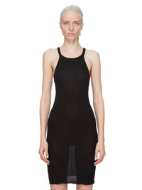 DRKSHDW SS25 HOLLYWOOD RACER BACK TANK DRESS IN BLACK COTTON GAUZE JERSEY THIS RACER BACK TANK DRESS IS MID THIGH LENGTH WITH A STRAIGHT RAW CUT HEM. IT HAS A ROUND NECKLINE AND THIN SHOULDER STRAPS THAT FLOW INTO A RACER BACK AND A FIGURE HUGGING BODY WITH SHORT SKIRT. IT FEATURES THE SIGNATURE SINGLE SEAM RUNNING DOWN THE CENTRE BACK SPINE THIS LIGHTWEIGHT AND AIRY COTTON GAUZE JERSEY IS SEMI TRANSPARENT AND HAVE A SOFT WASHED HANDFEEL. THIS JERSEY IS GARMENT DYED THIS FABRIC IS MADE USING GOTS CERTIFIED ORGANIC COTTON WHICH MEANS THE NATURAL FIBER IS GROWN WITHOUT HARMFUL CHEMICALS, LEAVING OUR SOIL, AIR AND WATER CLEANER FROM CONTAMINATES COLOR: BLACK MATERIAL: 100% COTTON MODEL IS 181CM TALL MODEL WEARS SIZE S