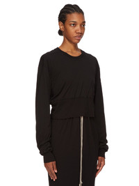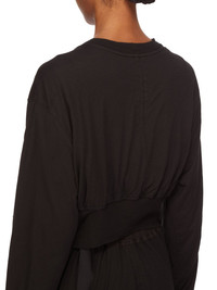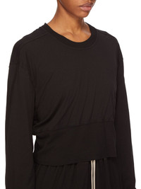 DRKSHDW SS25 HOLLYWOOD TATLIN SWEAT IN BLACK COTTON GAUZE JERSEY THIS TATLIN SWEAT IS WAIST LENGTH. IT HAS WIDE SHOULDERS AND DEEP ARMHOLES, WITH LONG SLEEVES. IT HAS A RIBBED CREWNECK, CUFFS AND A WIDE WAISTBAND THAT CINCHES INTO THE WAIST. IT FEATURES SIGNATURE LEVEL SHOULDER SEAMS AND SEAM RUNNING DOWN THE CENTRE BACK SPINE THIS LIGHTWEIGHT AND AIRY COTTON GAUZE JERSEY IS SEMI TRANSPARENT AND HAVE A SOFT WASHED HANDFEEL. THIS JERSEY IS GARMENT DYED THIS FABRIC IS MADE USING GOTS CERTIFIED ORGANIC COTTON WHICH MEANS THE NATURAL FIBER IS GROWN WITHOUT HARMFUL CHEMICALS, LEAVING OUR SOIL, AIR AND WATER CLEANER FROM CONTAMINATES COLOR: BLACK MATERIAL: 100% COTTON MODEL IS 181CM TALL MODEL WEARS SIZE S