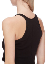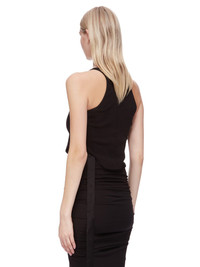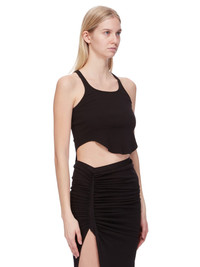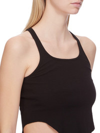 DRKSHDW FW24 PORTERVILLE BASIC TANK CROPPED IN BLACK MEDIUM WEIGHT COTTON JERSEY THIS BASIC TANK CROPPED IS WAIST LENGTH, WITH A ROUNDED RAW CUT HEM THAT DIPS IN FRONT AND BACK. IT HAS A ROUND NECKLINE AND THIN SHOULDER STRAPS THAT FLOW INTO A SLIGHT RACER BACK. IT FEATURES THE SIGNATURE SINGLE SEAM RUNNING DOWN THE CENTRE BACK SPINE THIS MEDIUMWEIGHT COTTON JERSEY HAS A COMPACT AND DRY HANDFEEL. THIS JERSEY IS GARMENT DYED THIS FABRIC IS MADE USING GOTS CERTIFIED ORGANIC COTTON WHICH MEANS THE NATURAL FIBER IS GROWN WITHOUT HARMFUL CHEMICALS, LEAVING OUR SOIL, AIR AND WATER CLEANER FROM CONTAMINATES - COLOR: BLACK - MATERIAL: 100% COTTON - MODEL IS 181CM TALL - MODEL WEARS SIZE S