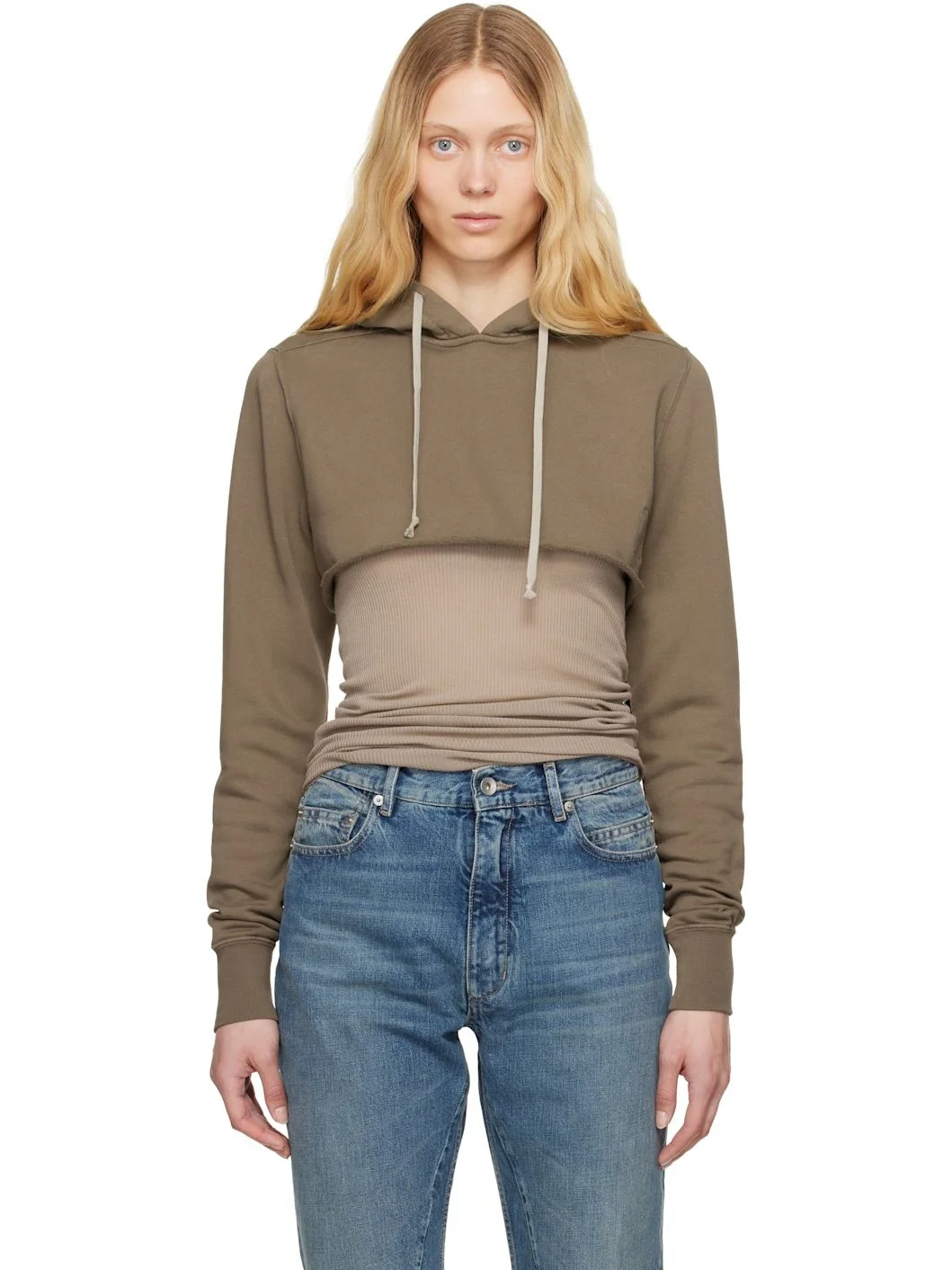 GOTS-certified organic cotton fleece hoodie. · Garment-dyed · Drawstring at hood · Rolled edge at cropped hem · Rib-knit cuffs · Central seam at back · Logo-woven webbing strap at interior Supplier color: Dust 100% organic cotton. Made in Portugal 251126F097009