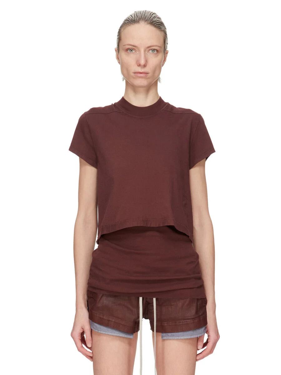 DRKSHDW FW25 CONCORDIANS CROPPED SMALL LEVEL T IN SCAB MEDIUM WEIGHT COTTON JERSEY THIS CROPPED SMALL LEVEL T IS ABOVE HIP LENGTH WITH A SEMI-FITTED CUT, SHORT SLEEVES AND A RIBBED CREW NECK. IT FEATURES SIGNATURE FRONT LEVEL SHOULDER SEAMS AND A CENTRE BACK SEAM. THIS MEDIUMWEIGHT COTTON JERSEY HAS A COMPACT AND DRY HANDFEEL. THIS JERSEY IS GARMENT DYED. THIS FABRIC IS MADE USING GOTS CERTIFIED ORGANIC COTTON WHICH MEANS THE NATURAL FIBER IS GROWN WITHOUT HARMFUL CHEMICALS, LEAVING OUR SOIL, AIR AND WATER CLEANER FROM CONTAMINATES. COLOR: SCAB MATERIAL: 100% COTTON MODEL IS 181CM TALL MODEL WEARS SIZE S