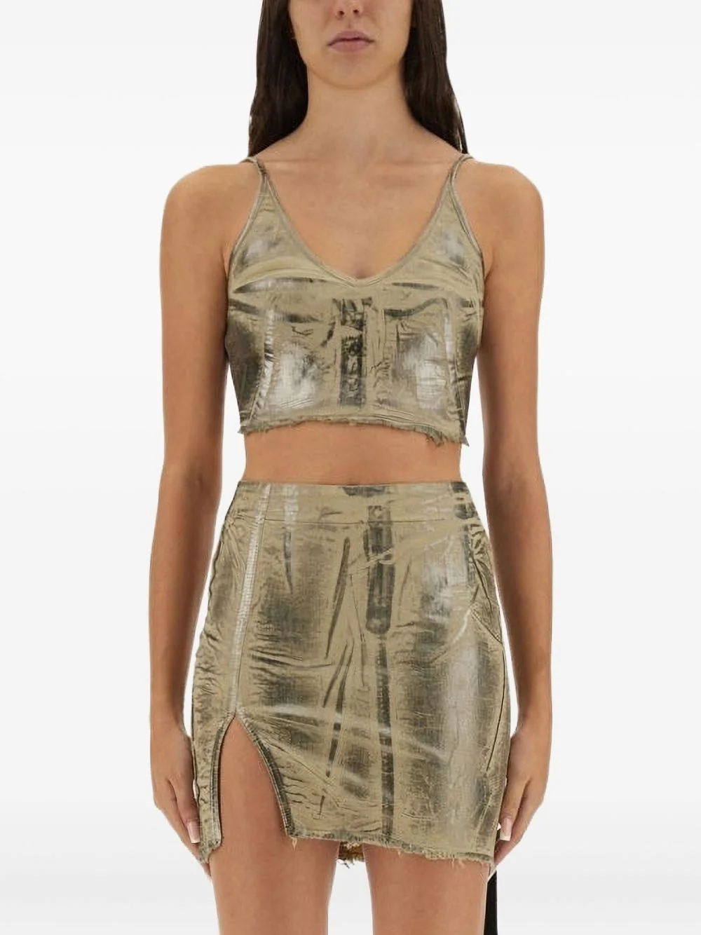 spaghetti-strap top Highlights - Beige and silver - Spaghetti straps - V-neck - Zip fastening Made in Italy Composition Cotton 90%, Polyester 7%, Rubber Fibre 3% Washing instructions Read Manufacturer Guidelines