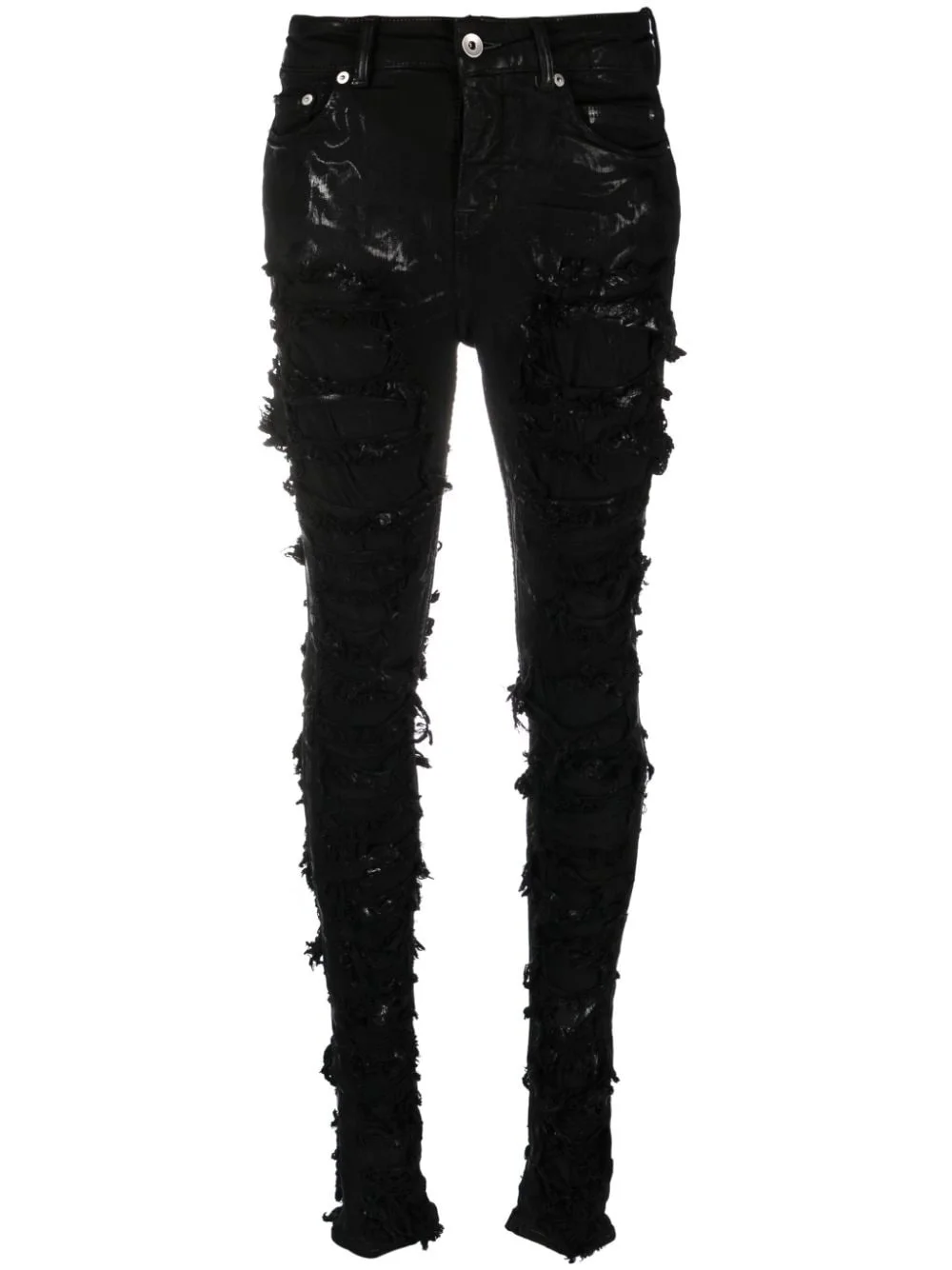 Detroit high-rise ripped skinny jeans Highlights - Black - Cotton blend - Denim - Distressed effect - Ripped detailing - Belt loops - High-waisted - Skinny cut - Front button fastening - Classic five pockets Made in Italy Composition Outer: Cotton 91%, Elastomultiester 6%, Rubber 3% Lining: Cotton 100% SIZE & FIT Model measurements Height 5 ft 10 in(1.79 m) Bust/Chest 33.07 in(84 cm) Hips 35.82 in(91 cm) Waist 24.01 in(61 cm) FittingInformation Designed for a skinny fit, these jeans offer a close fit throughout Constructed from stretch denim, this piece offers a stretch fit with durability This piece fits true to size – take your usual size Washing instructions Hand Wash