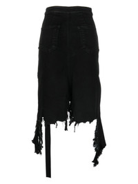 distressed denim midi skirt Highlights - Black - Cotton blend - Denim - Distressed finish - High-waisted - Belt loops - Concealed fly and button fastening - Asymmetric hem Made in Italy Composition Cotton 91%, Elastane 6%, Other fibres 3%